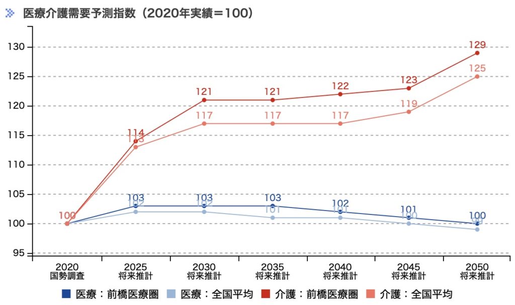 前橋医療圏の医療介護需要予測指数