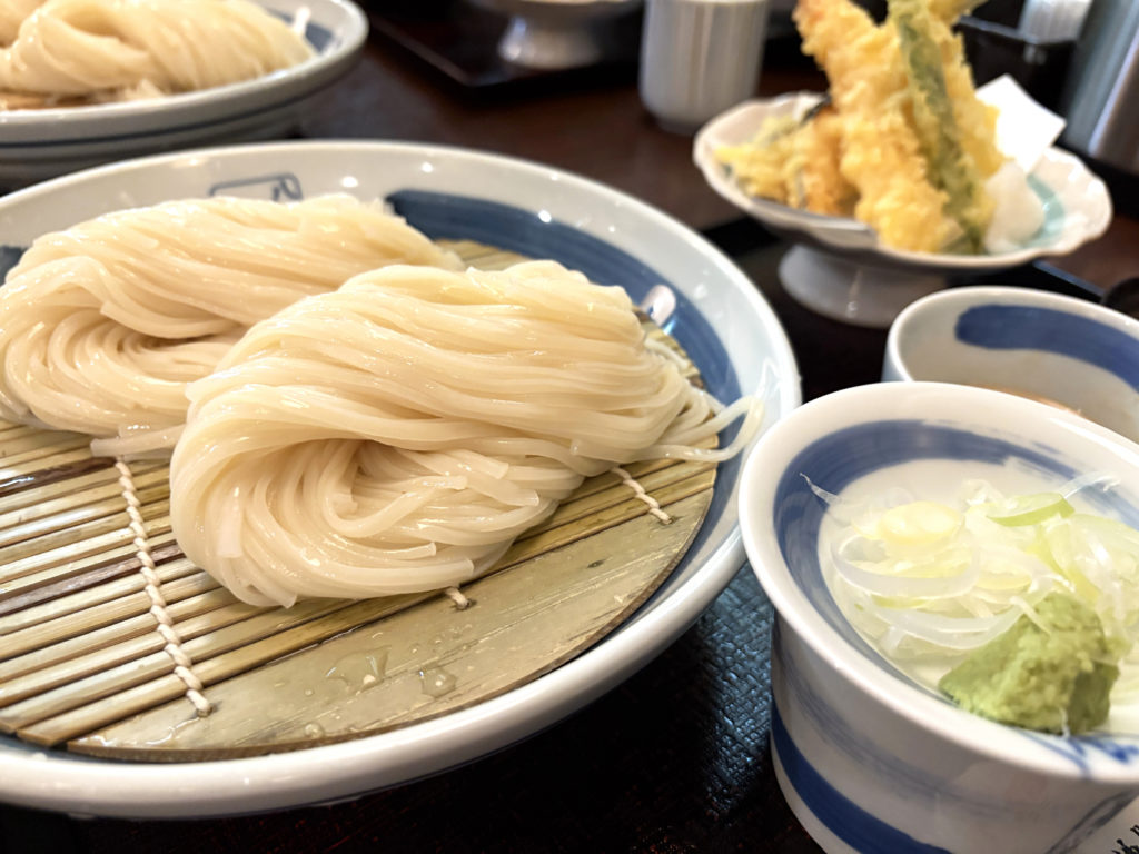 うどんが食卓に根付いた群馬県で生まれ育ち、大学時代は香川県で毎日讃岐うどんを食べて過ごした私としては、稲庭うどんを厳しくジャッジするつもりで店を訪れたのですが、ツルツルに輝き、細くてもコシのある麺に、すっかり魅せられてしまいました(笑)。