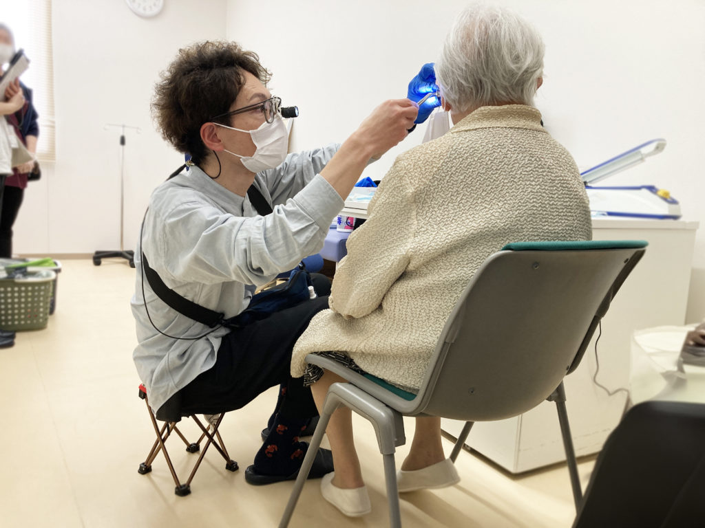 耳の処置では、耳鼻科の外来とは異なり、往診という制限のある環境の中で、限られた機材やスペースを使って安全に処置を行う工夫を体験していただきました。